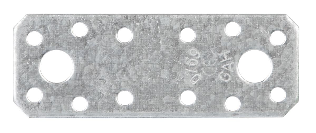 Flachverbinder, Material: Stahl roh, Oberfläche: sendzimirverzinkt, mit Kennzeichnung nach EN 14545, Länge: 96 mm, Breite: 35 mm, Materialstärke: 2,50 mm, Anzahl Löcher: 2 / 12, Loch: Ø11 / Ø5 mm, CutCase