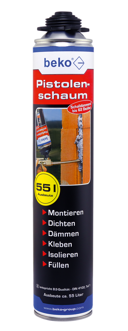 BEKO Pistolenschaum 750 ml, Fugenschalldämmung 56 dB, DIN 4102 B2, 42 Liter Ausbeute