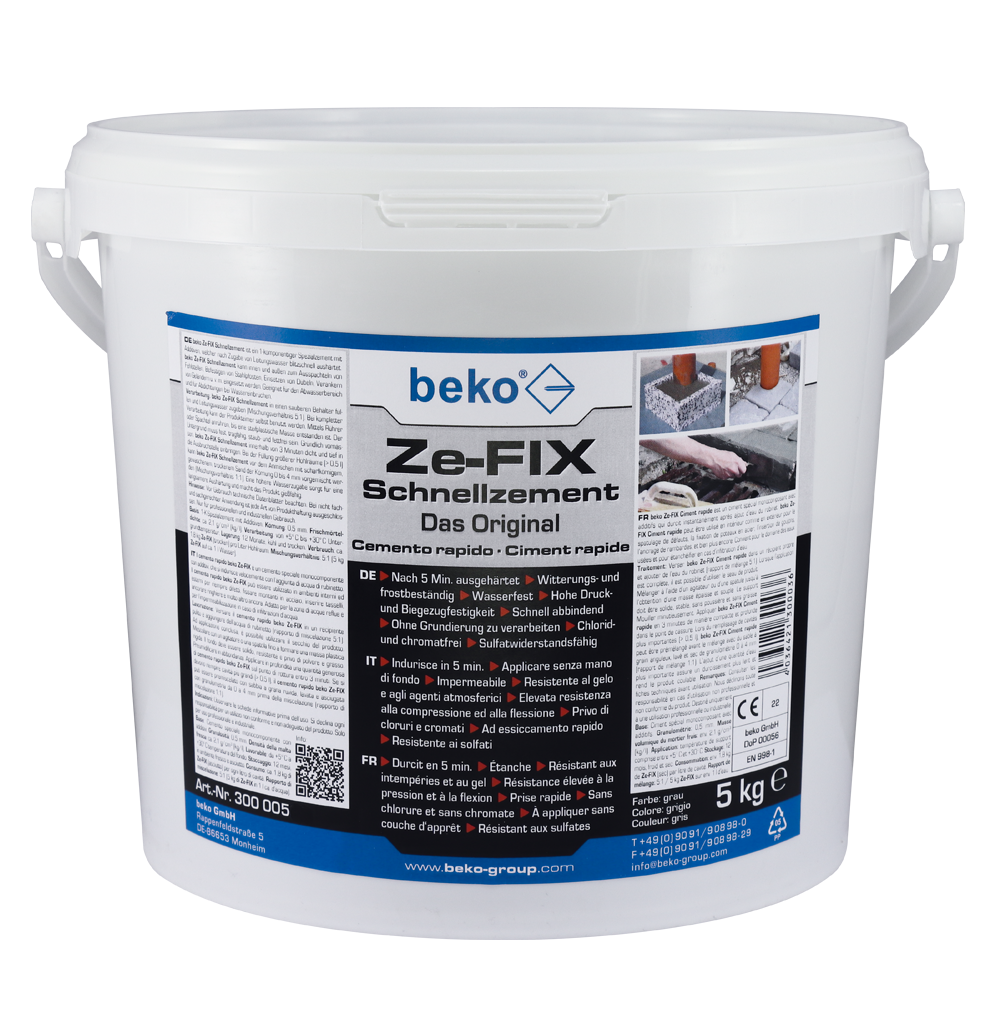 BEKO Ze-FIX Schnellzement 5 kg Eimer, rissfrei, wasser- und frostbeständig