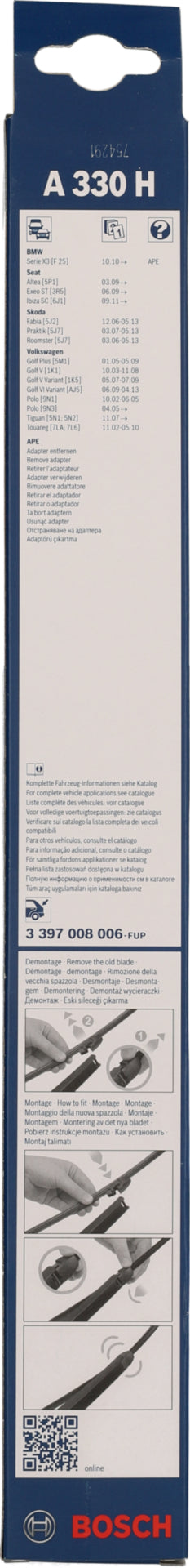 BOSCH Heckwischblatt Aerotwin Rear A330H, 3-Komponenten-Wischgummi, gelenkfrei