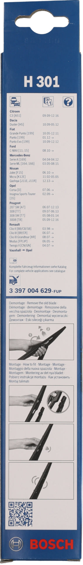 BOSCH Bosch Heckwischblatt Twin Rear H301, Erstausrüstungsqualität, flexible Zweistofftechnologie