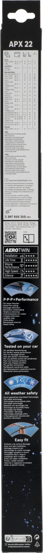 BOSCH Bosch Wischblatt Aerotwin APX22, Leichtlaufbeschichtung, Adapter-System für Mercedes