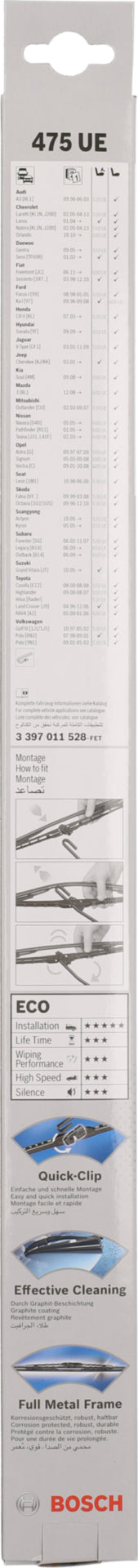 BOSCH Wischblatt Eco 475UE, Naturwischgummi mit Grafit, Universaladapter