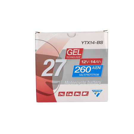 CARTEC Gel Motorradbatterie YTX14-BS, 14Ah 260A, auslaufsicher, wartungsfrei