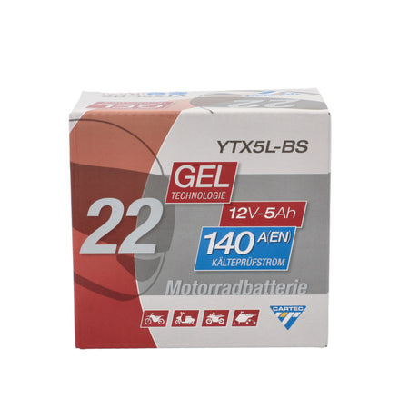 CARTEC GEL Motorradbatterie YTX5L-BS, 5Ah 140A, auslaufsicher, wartungsfrei