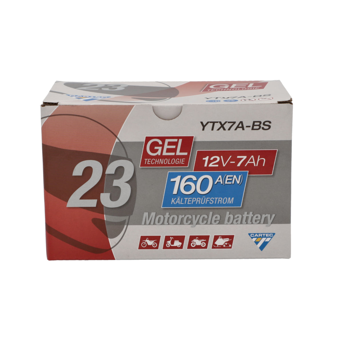 CARTEC Gel Motorradbatterie YTX7A-BS 7Ah 160A, auslaufsicher, wartungsfrei