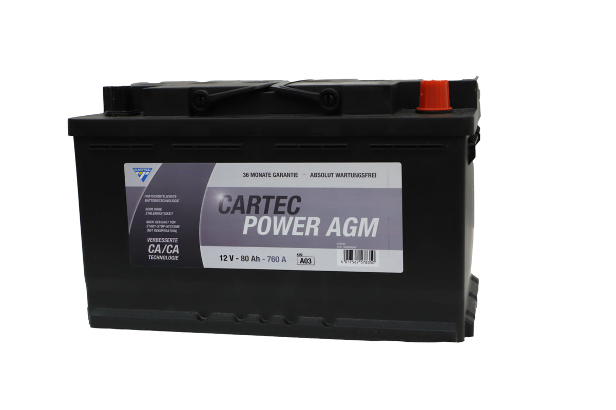 CARTEC POWER AGM Starterbatterie 80 AH / 800 A, auslaufsicher, vibrationsresistent