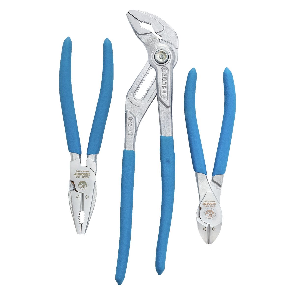 GEDORE Zangensatz 3-tlg, Universalzange, Kraft-Kombinationszange, Kraft-Seitenschneider, Kartonverpackung