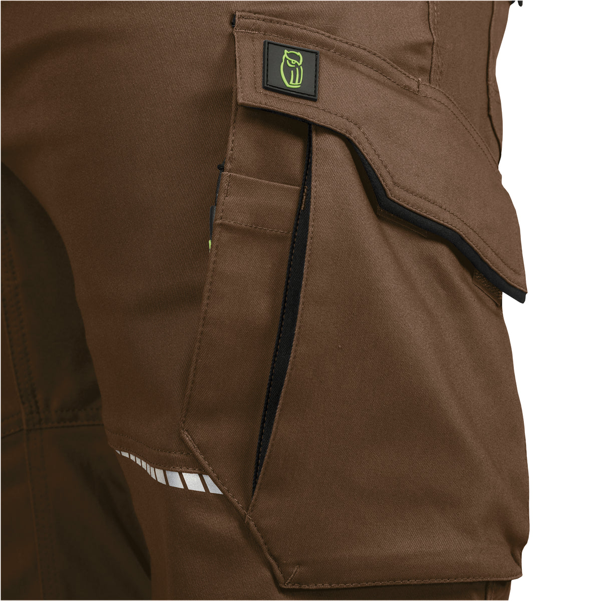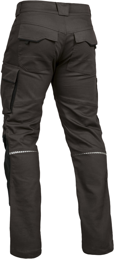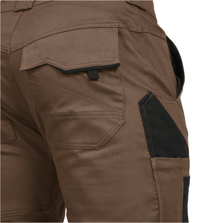 Robuste Bundhose in Haselnussbraun mit schwarzen Akzenten. Strapazierfähige Baumwoll- oder Mischgewebe, verstärkte Bereiche an Knien und Gesäß für lange Haltbarkeit. Praktische Taschen- und Verstauungsmöglichkeiten, bequeme Passform und ergonomische Schnittführung für großzügige Bewegungsfreiheit.