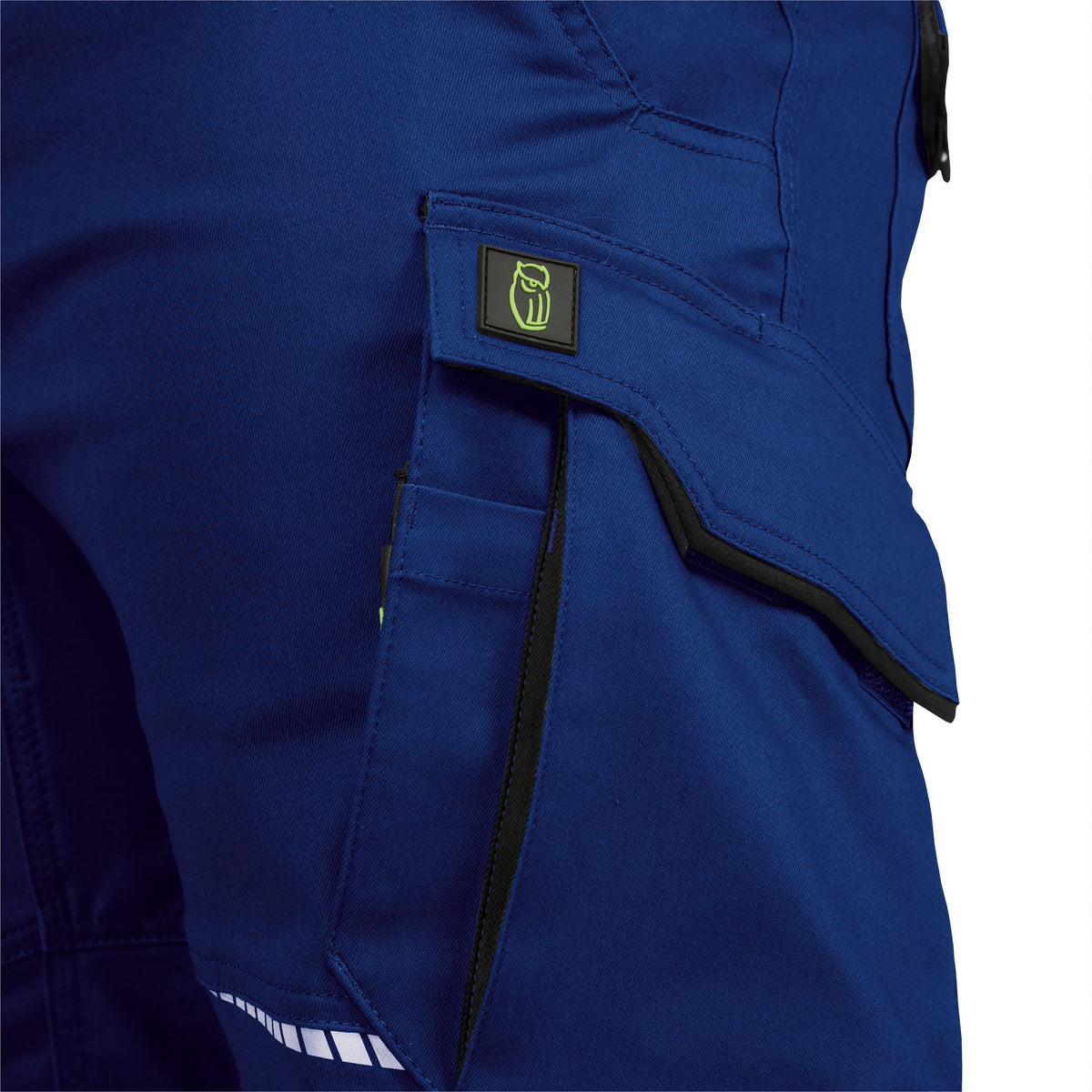 Bequeme Bundhose in Kornblau mit schwarzen Akzenten. Strapazierfähige Stoffmischung, robuste Nähte und elastischer Bund mit Größenverstellung für langes Tragevergnügen.