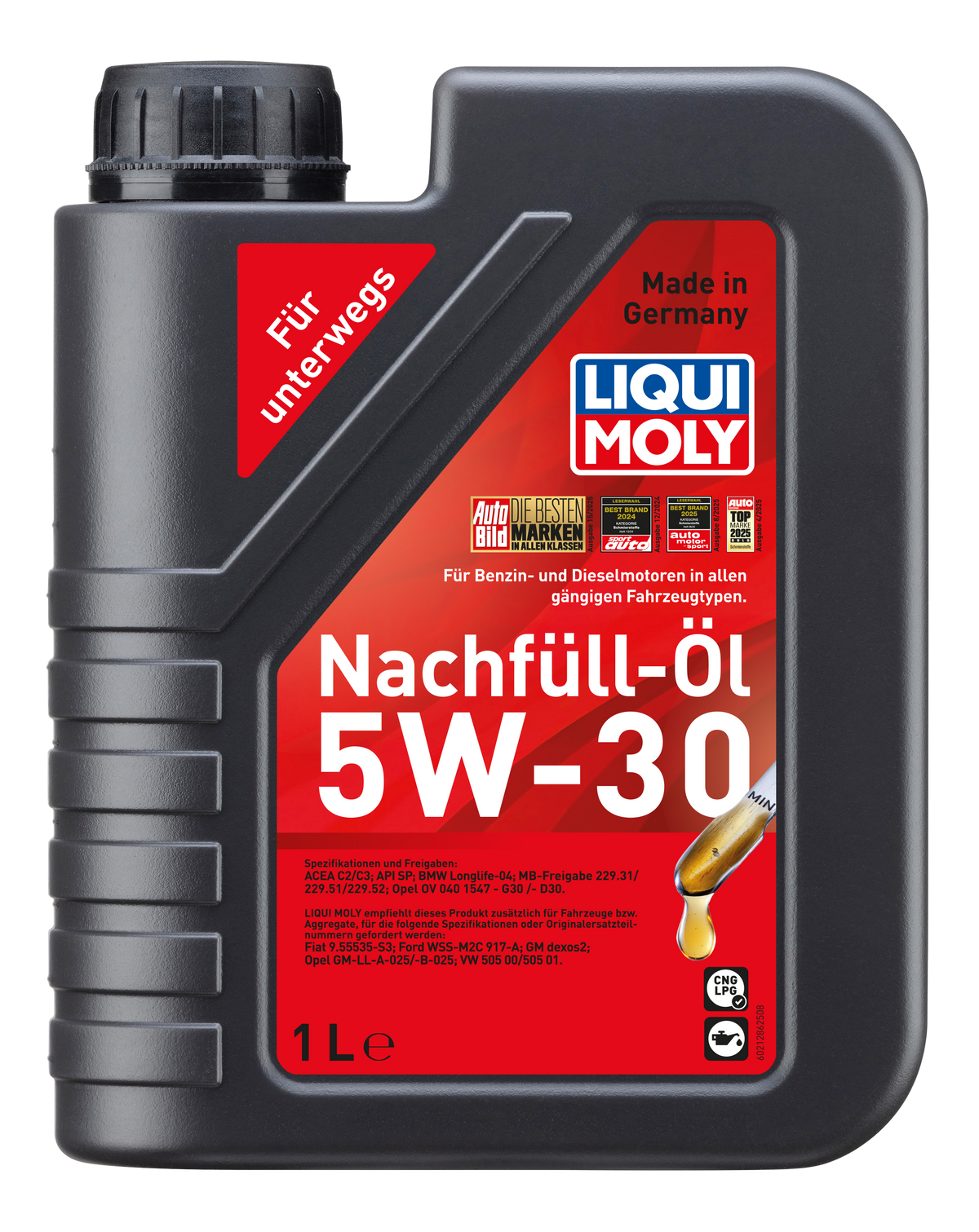 1-Liter Kunststoffkanister mit hochwertigem 5W-30 Motoröl für den Nachfüllbedarf. Gute Schmier- und Verschleißschutz-Eigenschaften, kompatibel mit vielen Motoren gemäß Herstellervorgaben. Ideal zur regelmäßigen Ergänzung des Ölstands, einfache Handhabung und einfache Lagerung. Perfekt für Wartungskits von Fahrzeugen, die Ton-Effizienz und Zuverlässigkeit schätzen.