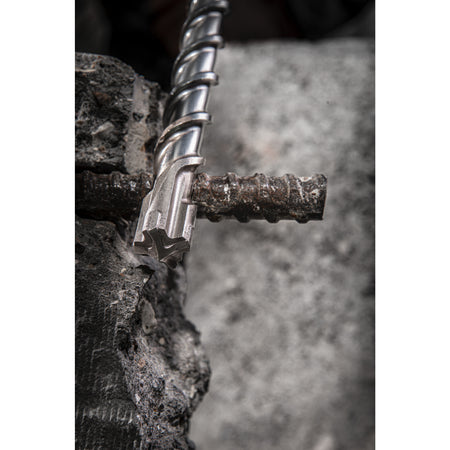 Große Hartmetallschneide mit Armierungsfasen an jeden Schneidenende. Geringere Vibrationen und besser Bohrleistung in Armierungseisen für längere Standzeit. Speziell entwickelte, robuste Kopfgeometrie mit optimaler 4 x 90° Schneidensymmetrie. Kein Blockieren des Bohrers bei Armierungstreffern.steel. Zentrierspitze mit 130° Winkel. Schnelles, punktgenaues Anbohren und optimale Führung während des Bohrens. Große, robuste Nebenschneide mit dynamischer Schneidkante. Unterstützt die Hauptschneide, für schnelleren Bohrfortschritt. Kürzere Wendelung. Für schnelleren Bohrmehltransport vom Kopf zur Spirale, geringere Abnutzung und Wärmeentwicklung am Bohrkopf. Innovative, optimierte Hartmetall-Hauptschneide. Verschleißindikator an beiden Seiten des HM-Elementes. Garantiert passgenaues Bohren und maßhaltige Bohrlöcher über die gesamte Lebensdauer. Patentierte, kernverstärke Spirale (KVS). Vibrationsarmes Bohrverhalten und extreme Bruchsicherheit. Schlagenergie wird direkt auf die Bohrspitze übertragen. Großvolumige Spirale. Schnellerer Bohrmehltransport für schnelleren Bohrfortschritt und lange Standzeit. Virabtionsarmes Bohren für hohen Anwenderkomfort. Spezielle Oberflächenbehandlung für erhöhte Widerstandsfähigkeit. PGM geprüft. Garantiert passgenaue Dübellöcher über die gesamte Lebensdauer