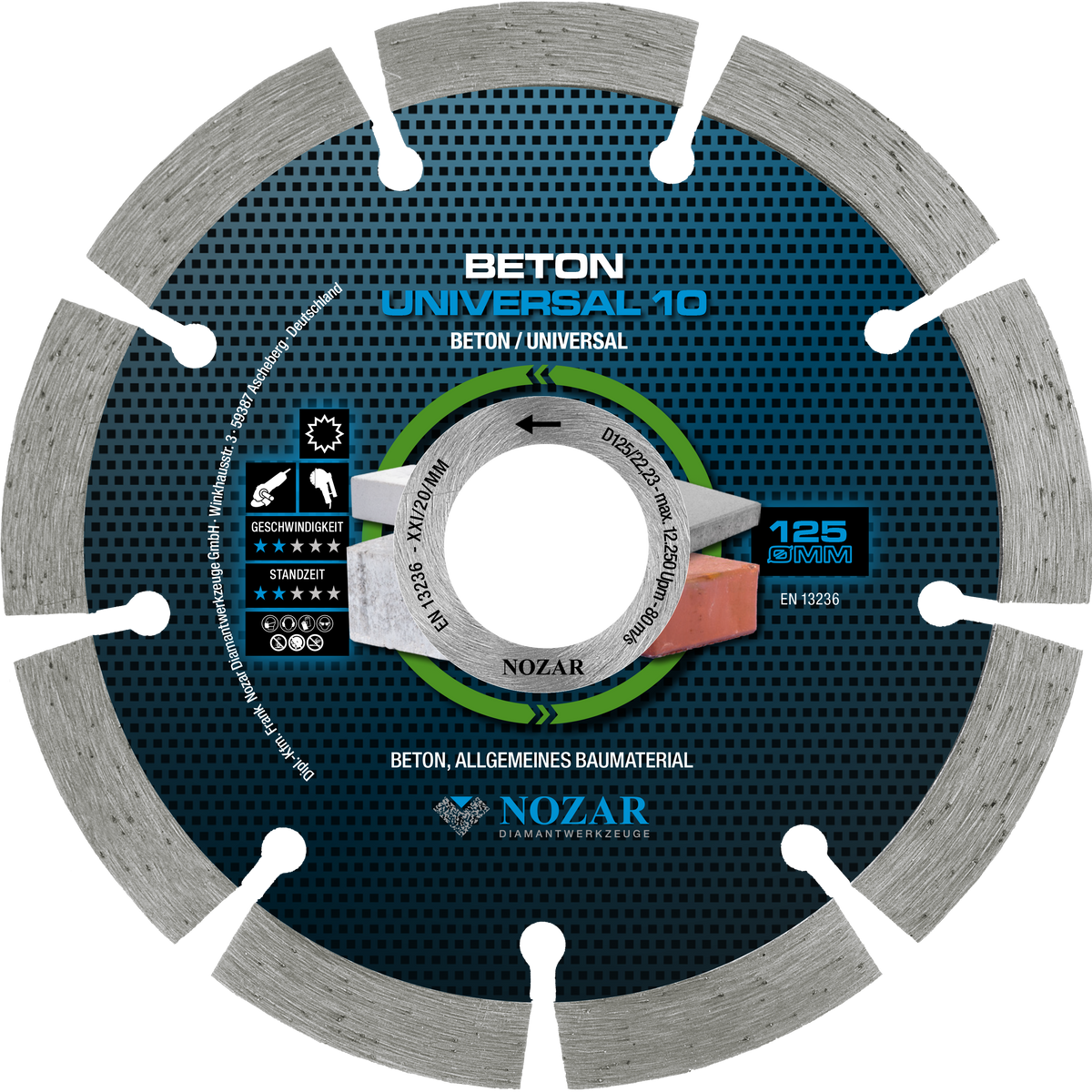 NOZAR Diamanttrennscheibe Dia-TS 125x22,23 mm, Beton Universal 10, 37x2,0x10 mm, 9 Seg.