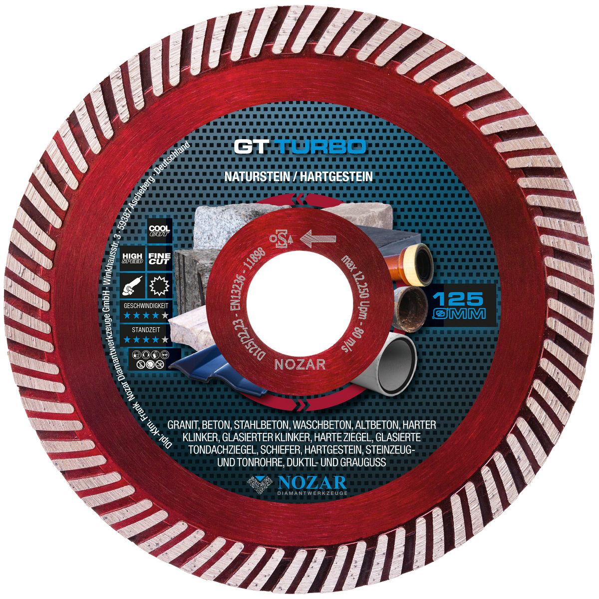 NOZAR Diamanttrennscheibe Dia-TS 125x22,23 mm, Turbo, geschlossener Rand