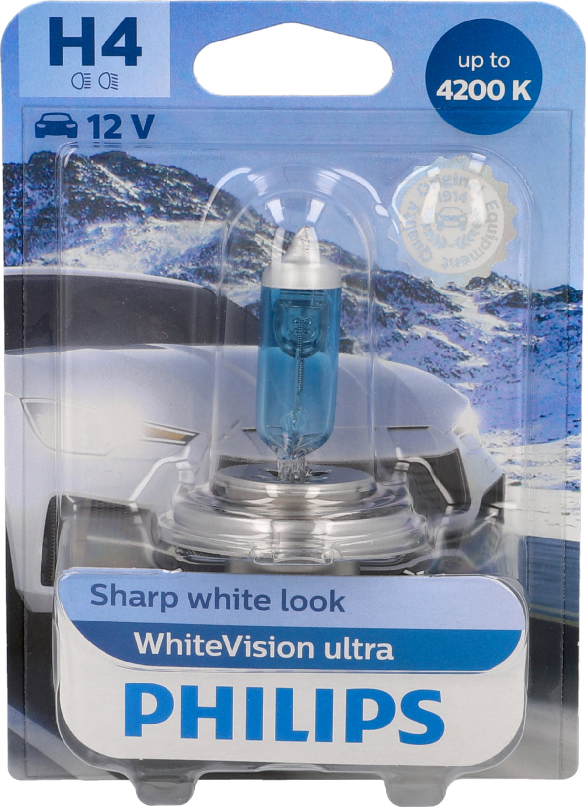 PHILIPS H4 WhiteVision ultra, 4200K, Straßenzugelassene Halogen-Scheinwerferlampen