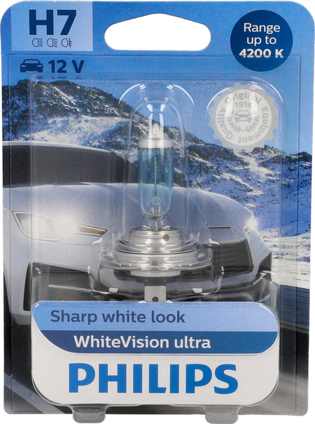PHILIPS H7 WhiteVision ultra Halogen-Scheinwerferlampen, 4200 Kelvin, Straßenzulassung