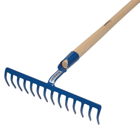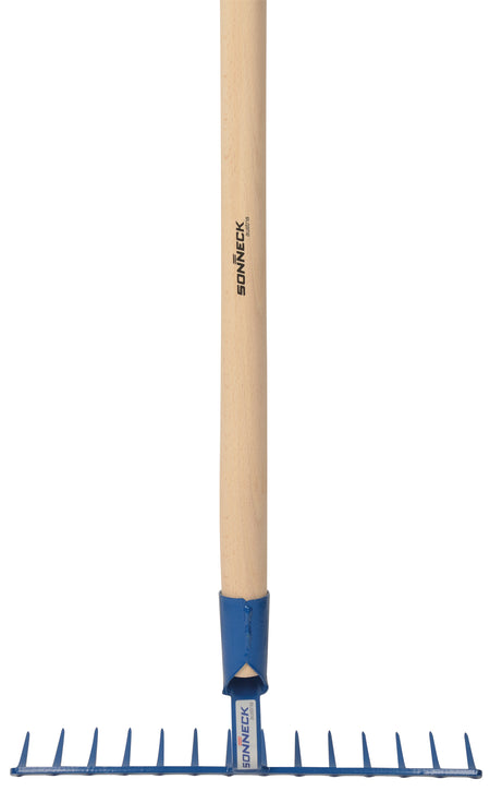Extra robuster Baurechen mit 14 Zähnen und verstärkter Tülle, geschmiedet und gehärtet, extra starker Stiel 1600mm.