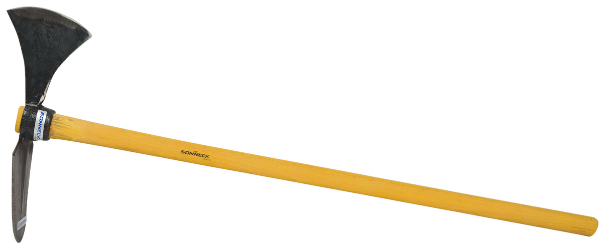 Wiedehopfhaue 1500g, mit scharfer Innenschneide um Wurzeln und Erdreich zu zerschneiden. Mit robustem Stiel, 1100mm lang, aus bester Buche, fein geschliffen. Die Haue hat die richtige Form um leicht ins Erdreich eindringen zu können.