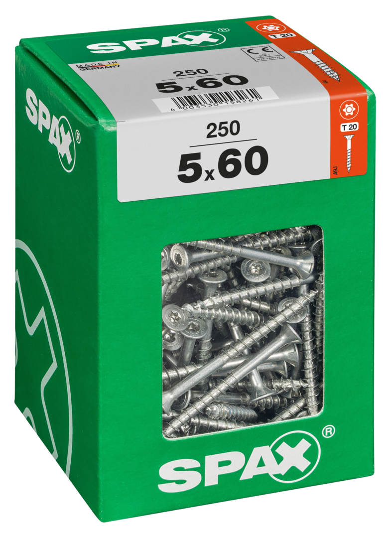 Der SPAX Universal Senkkopf T-STAR plus TGW WIROX A9J 5 x 60 mm ist eine hochwertige Schraube für anspruchsvolle Befestigungsarbeiten. Mit einer Packung von 250 Stück bietet sie ausreichend Material für größere Projekte. Der Senkkopf sorgt für eine bündige Verschraubung, während der T-STAR plus Antrieb eine einfache und sichere Handhabung ermöglicht. Die WIROX-Beschichtung in A9J schützt die Schrauben effektiv vor Korrosion, was den Einsatz im Innen- und Außenbereich ideal macht.