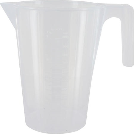 Praktischer Kunststoff-Meßbecher mit 2-Liter-Fassungsvermögen und gut lesbarer Maßskala. Leicht, bruchsicher und ideal für präzises Abmessen von Flüssigkeiten im Labor, Werkstatt oder Küche. Skala scanbar für einfache Ablesung, auslaufsicherer Hornrand.