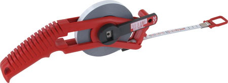 Langlebiges Bandmaß mit 50 m Messlänge und robustem Stahlband. Weiße, abriebfeste Lackierung schützt vor Korrosion und erleichtert Ablesen. Präzise Skala, gut ablesbare Markierungen und wiederverwendbare Rahmenführung für genaue Messungen in Bau- und Innenausbauprojekten. Ergonomischer Griff und zuverlässiger Federmechanismus für komfortables Arbeiten.