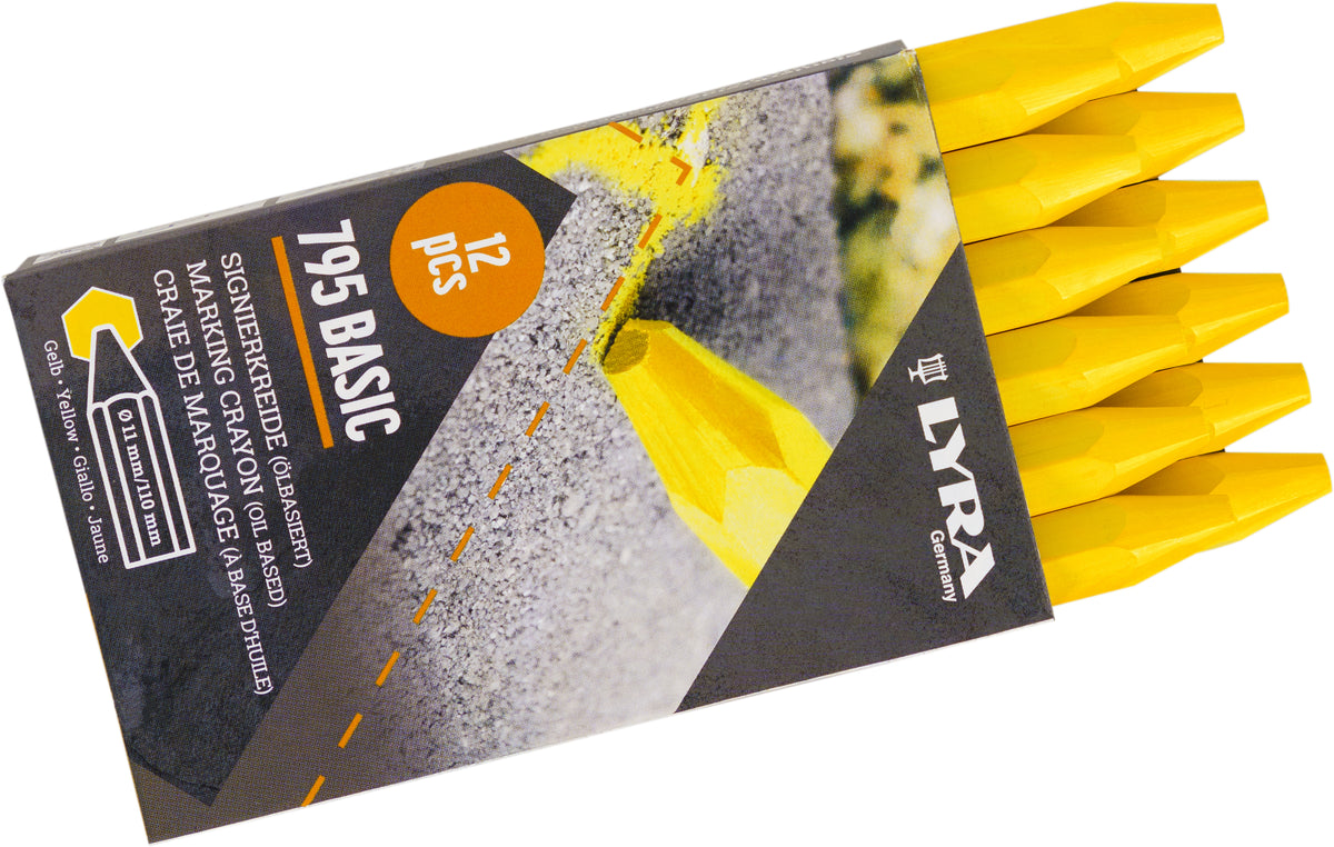 Set aus 12 gelben Signierkreiden in unbeschichteter, unpapierteter Verpackung. Weiche, gut sichtbare Linien auf Holz, Metall und Stein; ideal für Markierungen, Vermessung und Bauarbeiten. Ergonomische Grifffläche und gleichmäßige Kreideabgabe; leicht zu lösen und mit ausreichender Haltbarkeit für präzise Markierungen.