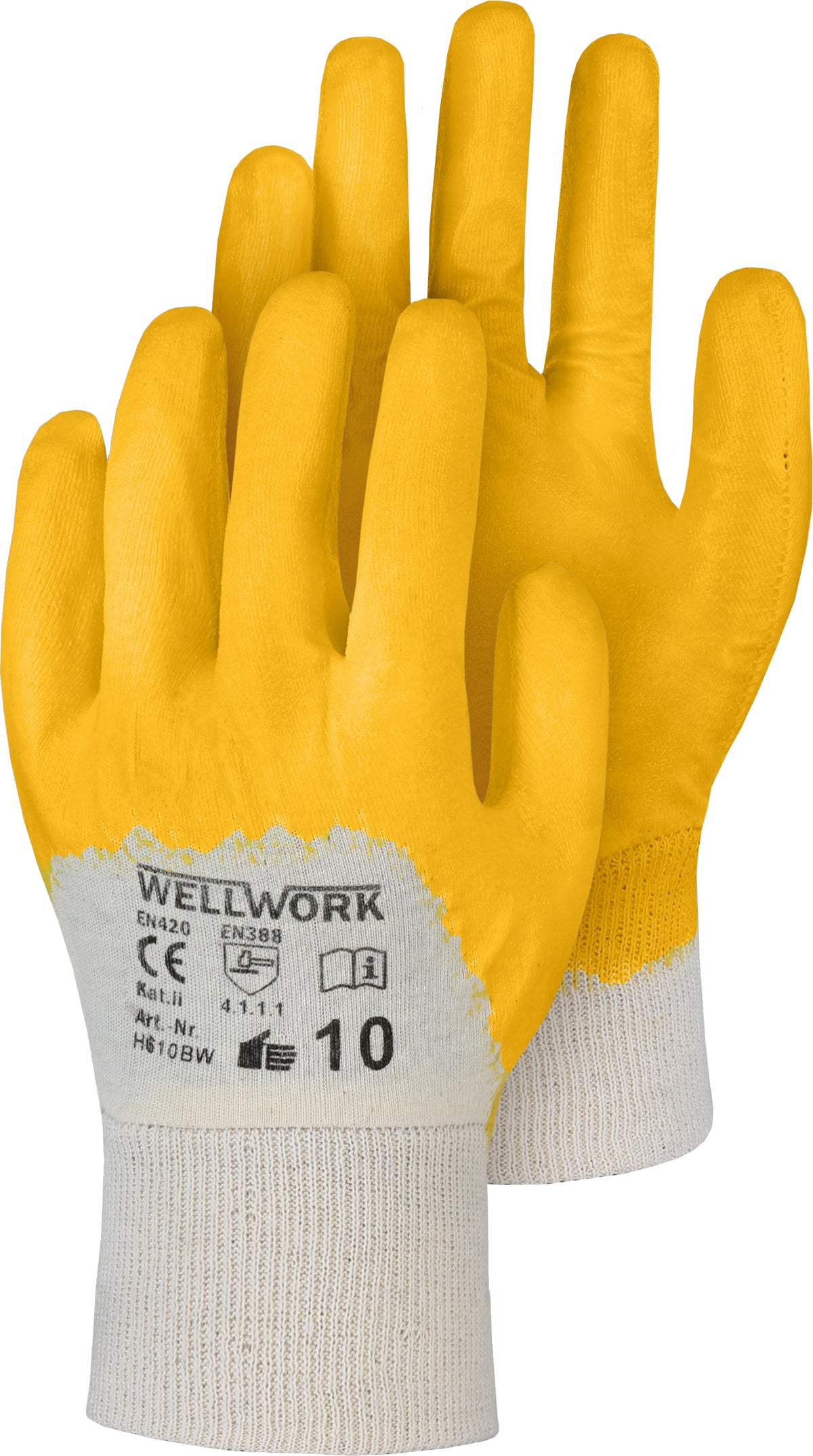 Hochwertige Handschutzlösung: gelbe Baumwollträger kombiniert mit einer nitrilbeschichteten Handschuhoberfläche für exzellenten Grip. Atmungsaktives, komfortables Tragen dank dezenter Polsterung und elastischer Bündchen. Nitrilbeschichtung bietet gute Fett- und Ölabweisung, abriebfesten Halt und erhöhte Griffigkeit bei trockenen wie feuchten Bedingungen.