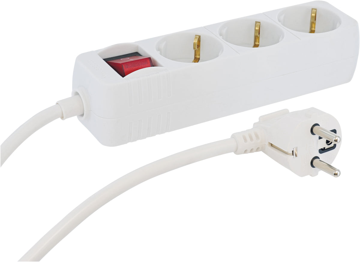 Kompakte Steckdosenleiste mit drei Schuko-Steckdosen. Zuverlässige Stromversorgung für Arbeitsplatz, Werkstatt oder Haushaltsbedarf. Robuste Bauweise, sicherer Elektronikschutz und elegantes Design. Ideal für zeitnahes Anschluss von Geräten mit stabilem Netzanschluss.