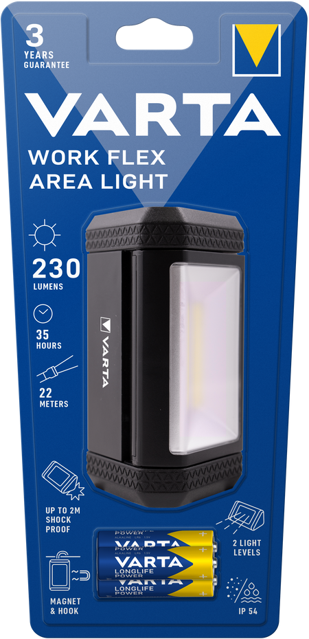Die VARTA Work Flex Area Light bietet flexible, leistungsstarke Beleuchtung für Arbeitsbereiche. Leicht, stoßfest und wetterbeständig mit einem integrierten Akku für lange Betriebszeiten. Stufenlos einstellbare Helligkeit und beam-Optionen ermöglichen eine präzise Ausleuchtung großer Flächen. Vielseitig montierbar, ideal für Montagearbeiten, Werkstätten, Bau- und Outdoor-Einsätze.